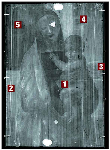 So I think the elimination of the dark background is now required, to reveal the original text, but the question remains: what led to the covering up of Raphael's precious text which, as evidenced by the X -rays, still exists? Some marginal damage? And is the panel itself still intact or, as it seems, has it been cropped? In short, the problems are many; it is certain that we are confronted with a discovery that will forever change the image of the Granduca Madonna, diffused in millions of copies and now seen as almost holy. Think about it: we are about to see disappear forever the only known Raphael that was disguised as a Caravaggio!